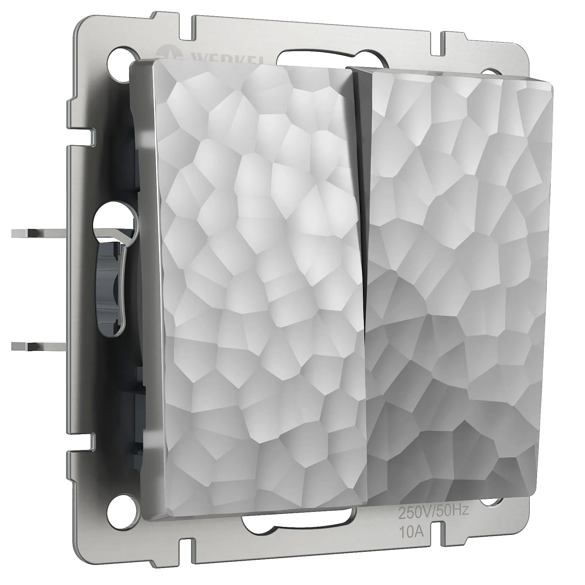 Выключатель двухклавишный проходной Werkel серебряный Hammer — управление светом из двух и более точек